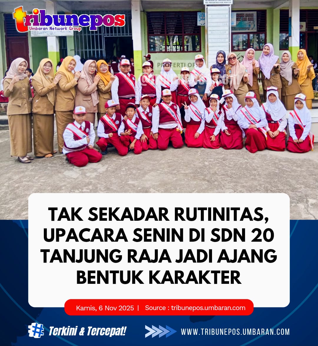 OGAN ILIR, TRIBUNEPOS – Lapangan SDN 20 Tanjung Raja, Ogan Ilir, Sumsel tampak khidmat, Senin (5/11/2025) pagi. Di bawah langit cerah pukul 07.30 WIB, seluruh guru, staf, dan siswa mengikuti upacara bendera rutin yang digelar setiap awal pekan.