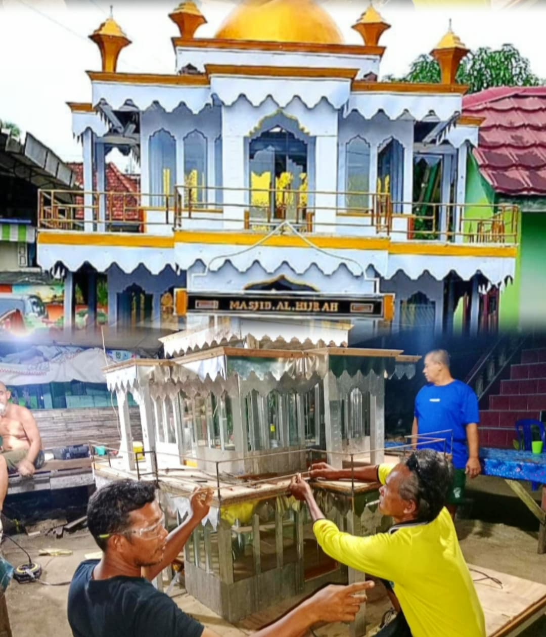 Miniatur masjid ini telah dikerjakan secara gotong royong selama beberapa hari.