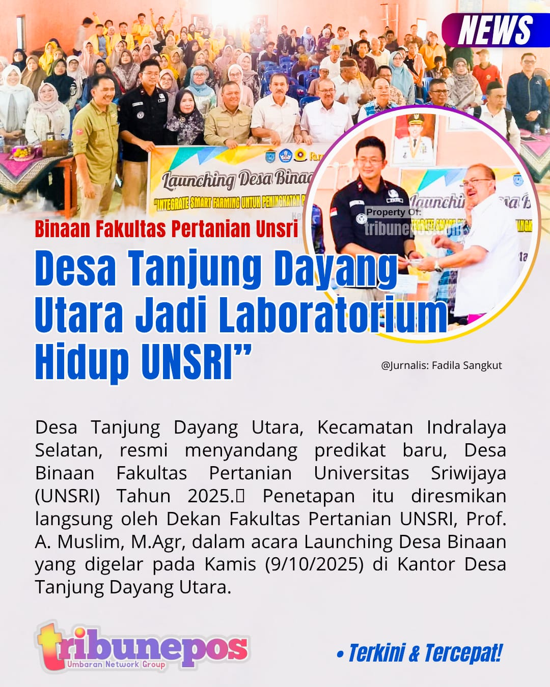 OGAN ILIR, TRIBUNEPOS — Desa Tanjung Dayang Utara, Kecamatan Indralaya Selatan, resmi menyandang predikat baru, Desa Binaan Fakultas Pertanian Universitas Sriwijaya (UNSRI) Tahun 2025.