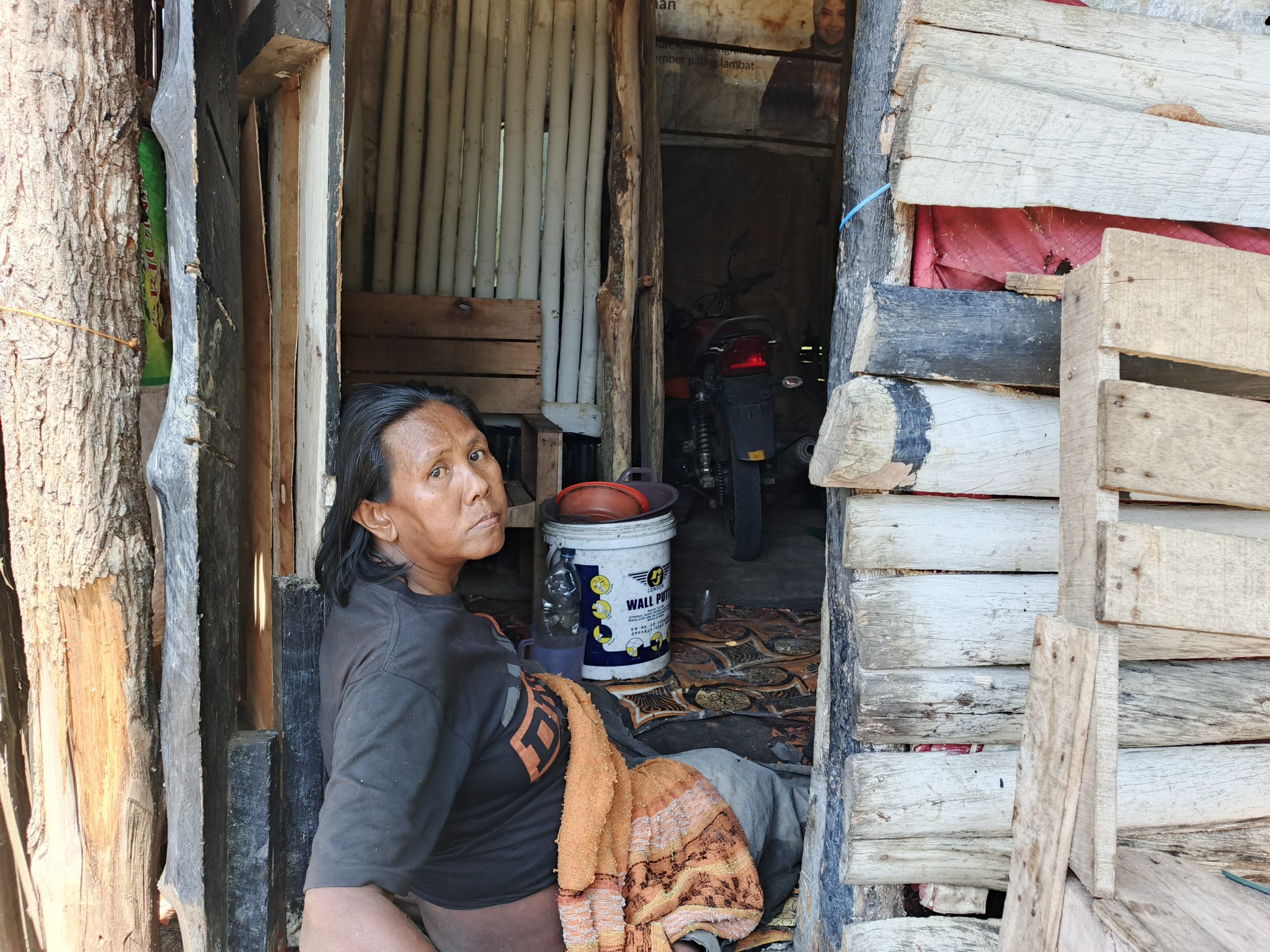 Susmanila, seorang ibu dengan tiga anak, hanya bisa terbaring lumpuh di rumah kayu rapuh yang nyaris roboh.