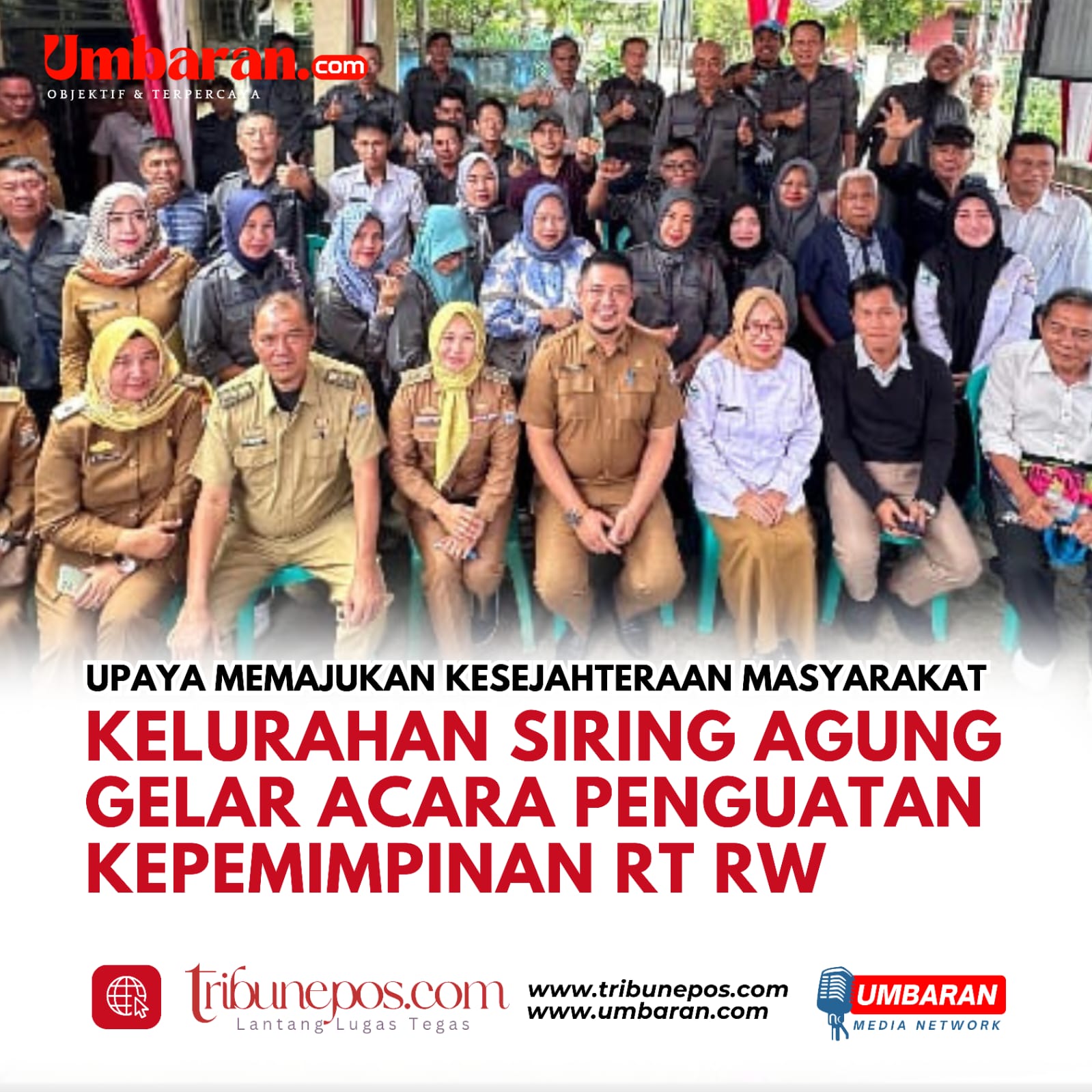 PALEMBANG, TRIBUNEPOS – Kelurahan Siring Agung Palembang mengadakan acara penting untuk meningkatkan kualitas kepemimpinan dan kolaborasi di tingkat RT RW. Acara tersebut dihadiri oleh Sekretaris Camat Ilir Barat Satu yang mewakili Camat Alexander Palembang, serta Lurah Siring Agung, Rosmala Dewi, yang turut mendukung upaya peningkatan layanan dan pembangunan di lingkungan tersebut.