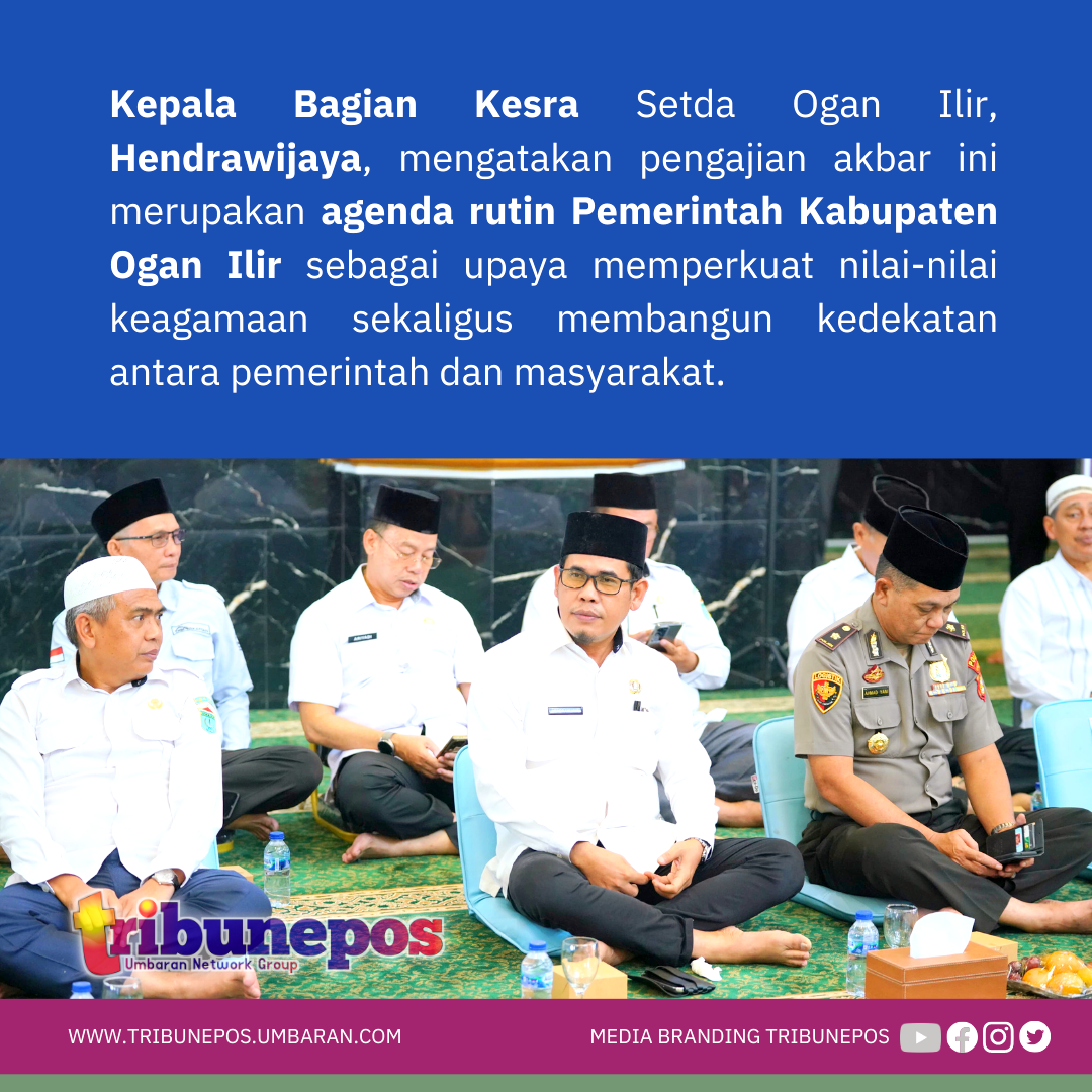 Kepala Bagian Kesra Setda Ogan Ilir, Hendrawijaya, mengatakan pengajian akbar ini merupakan agenda rutin Pemerintah Kabupaten Ogan Ilir sebagai upaya memperkuat nilai-nilai keagamaan sekaligus membangun kedekatan antara pemerintah dan masyarakat.