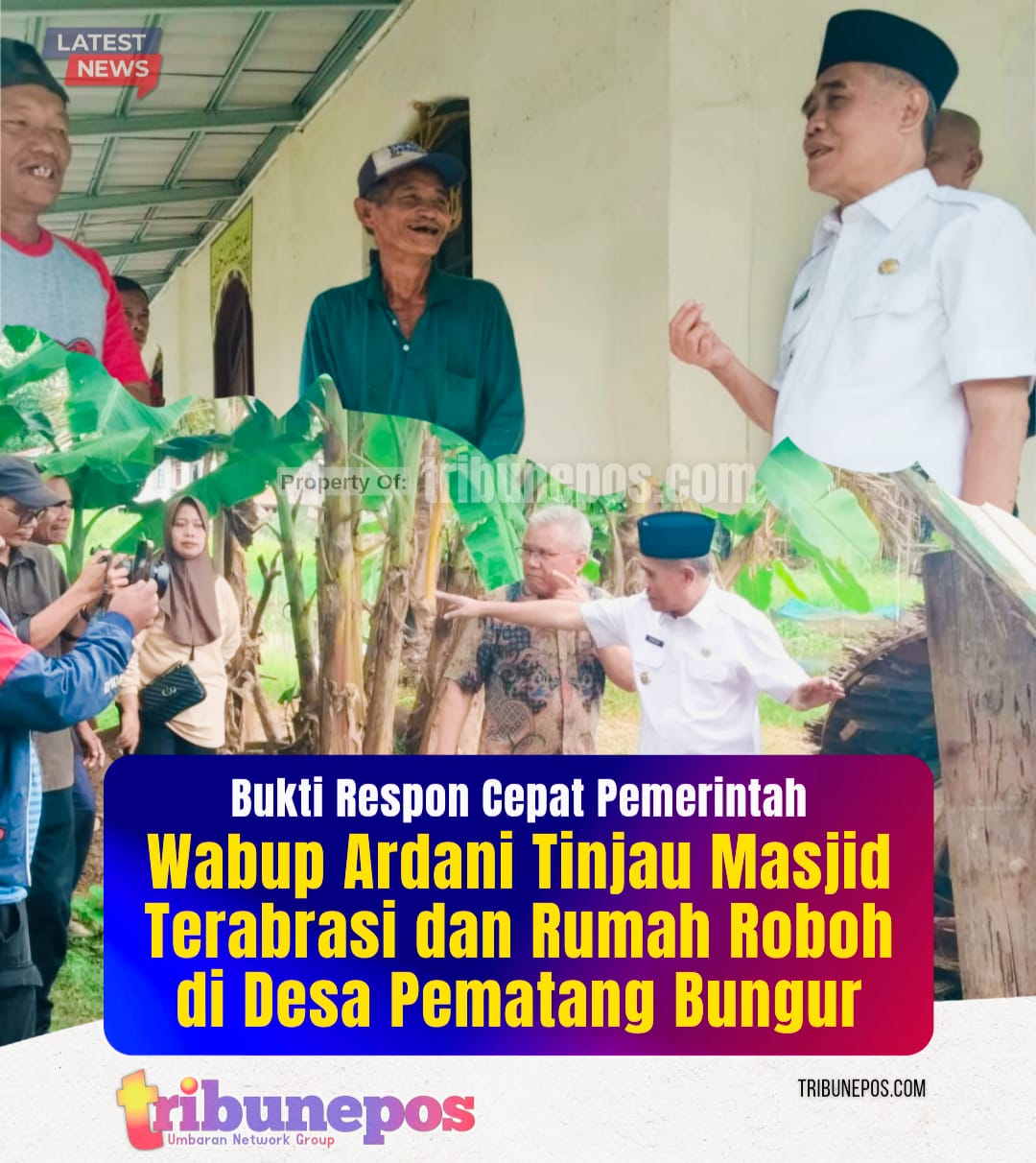 OGAN ILIR, TRIBUNEPOS – Wakil Bupati Ogan Ilir, H. Ardani, SH, MH, turun langsung meninjau Masjid Al Muhajirin dan sejumlah rumah warga yang terdampak abrasi di Desa Pematang Bungur, Kecamatan Pemulutan Selatan, Senin (1/9/26) kemarin.