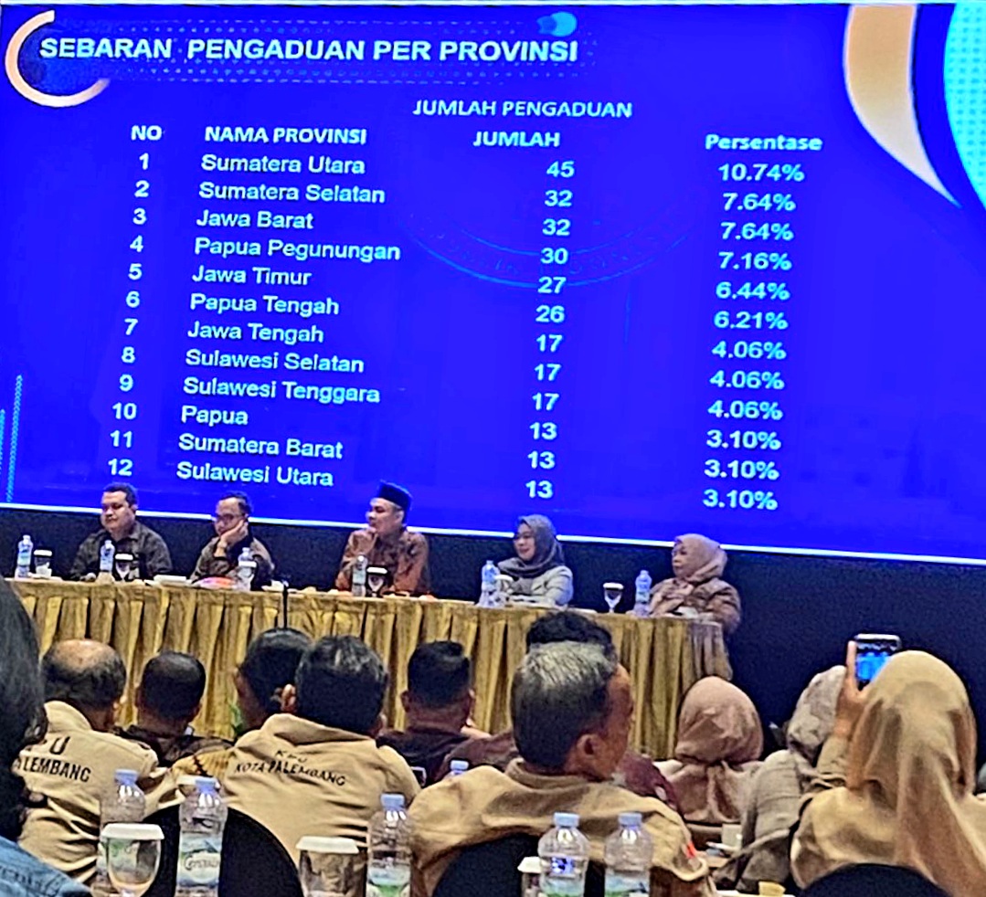 Sebanyak 32 pengaduan resmi masuk, menjadikan Sumsel hanya berada di bawah Sumatera Utara yang mencatatkan 45 pengaduan.