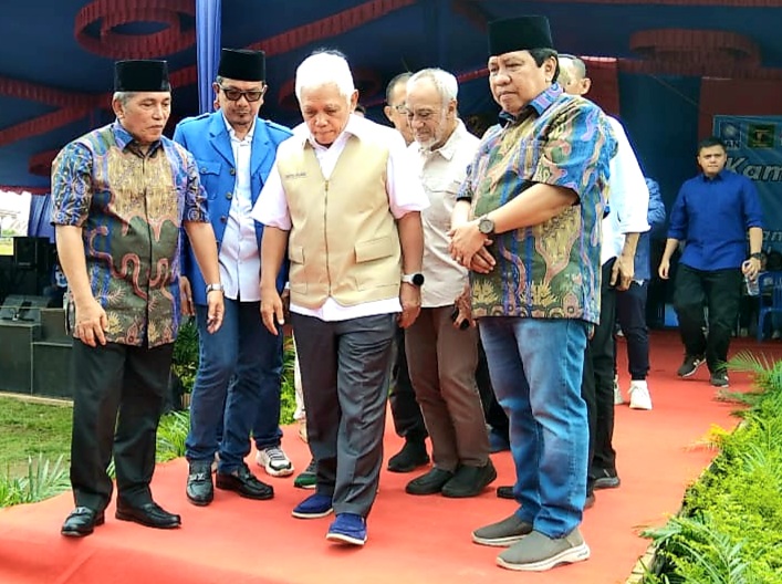 Suasana semakin meriah dengan kehadiran tokoh nasional, Hatta Rajasa, yang menjadi pusat perhatian di atas panggung.